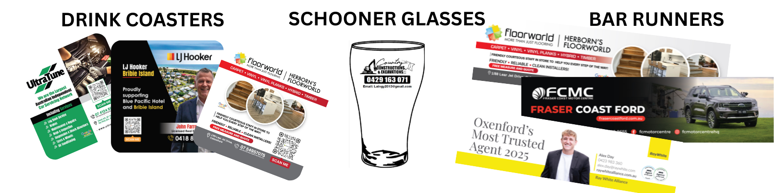 Our unique designs ensure that your locals can find and save your details even if they don't take the coasters home.